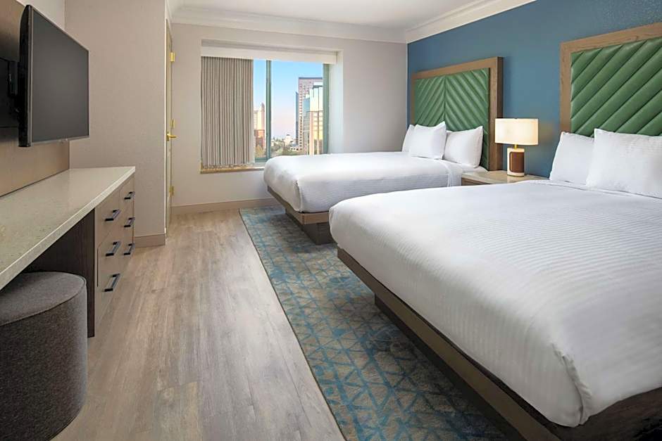 All of our suites include complimentary cooked-to-order full breakfast and Evening Reception featuring beer, wine, premium spirits and light snacks. This mobility accessible premium suite features one king-sized bed, and an accessible tub. Located on our Riverview side, this suite gives you the space and privacy you need for work or play on the road. Furnishings include sofa bed, armchair, activity table with upholstered chairs, beautiful bed linens, two 42-inch flat-screen televisions, alarm clock radio with MP3 connection, refrigerator and microwave oven. The bathroom features marble vanity and a tub with shower. Any corresponding photo may not reflect the specific accessible room type or room feature.